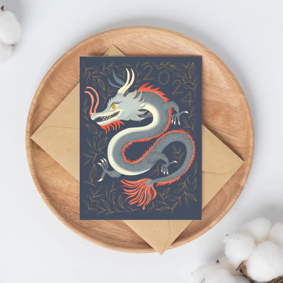 Blue Lunar Dragon Greeting Card