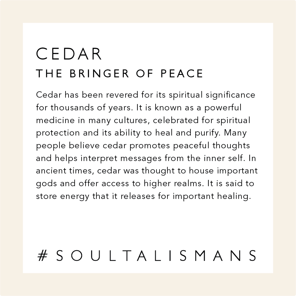 Golden Bronze Cedar Leaf Earrings (small) Revered the world over as a sacred tree, we've made the healing essence of Cedar available to you in our unique collection of Sterling Silver Cedar Jewelry. Wear these Cedar Leaf Earrings to remind you that you can be with your reactions differently, to make a different choice and maybe even discover a new part of yourself along the way. Talisman for: Clearing Negativity. Strength. Renewal. The Bringer of Peace - Cedar has been revered for its spiritual significance for thousands of years. It is known as a powerful medicine in many cultures, celebrated for spiritual protection and its ability to heal and purify. Many people believe cedar promotes peaceful thoughts and helps interpret messages from the inner self. In ancient times the cedar tree was thought to house important gods and be an entrance to higher realms. It was said to store energy and then release it for important healing. Width: 17mm Height: 27mm