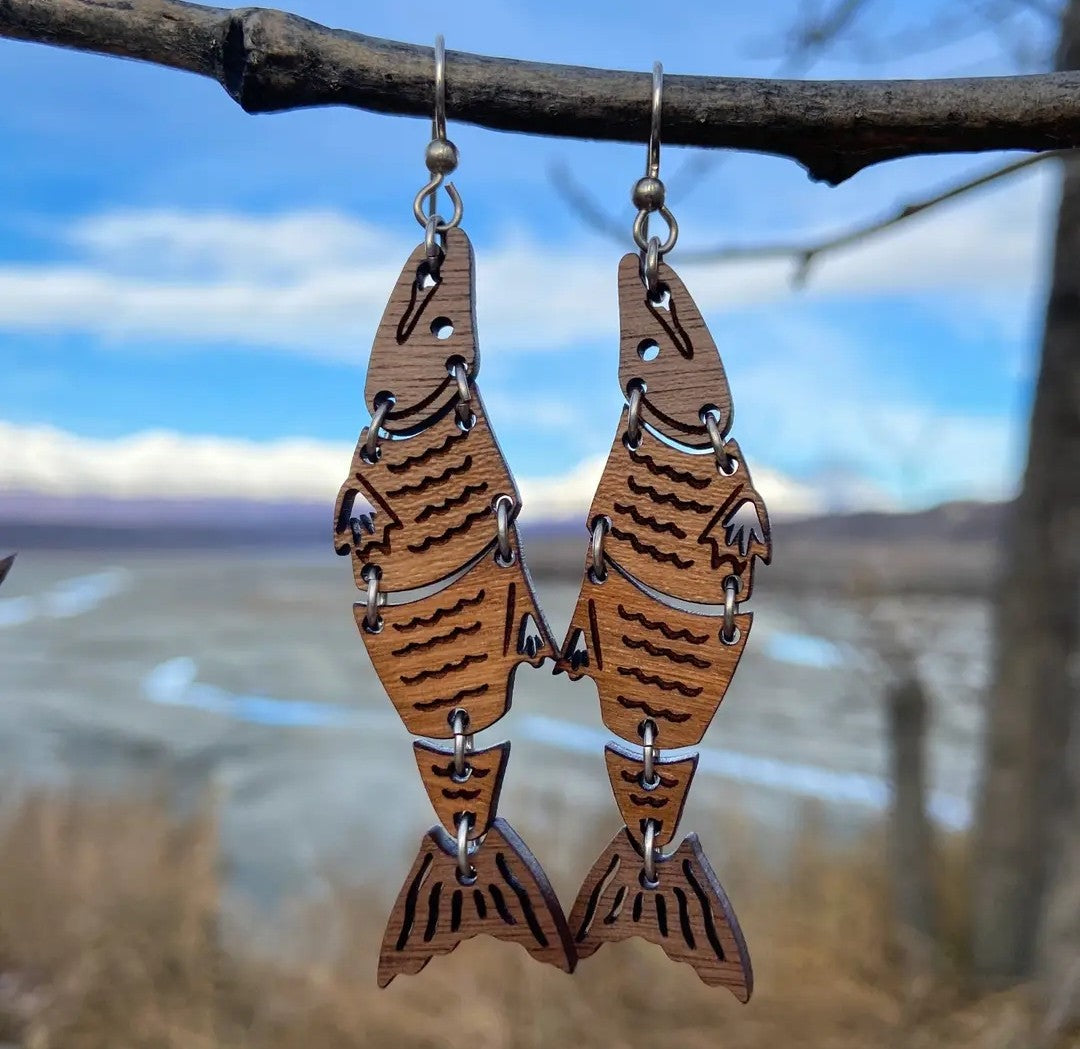 These beautiful alto (wave) earrings are made out of cherry wood, metal is silver plated, nickle free findings.