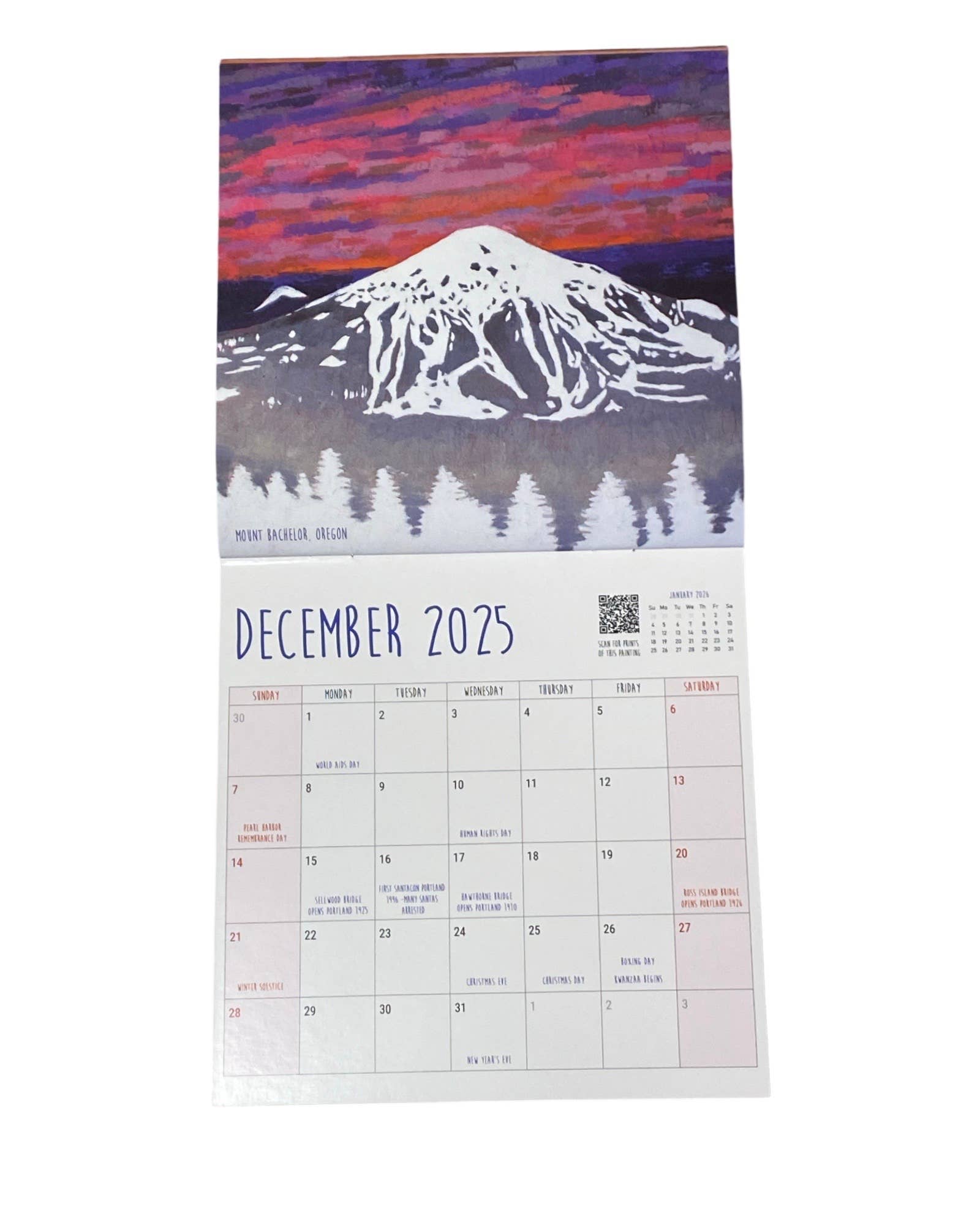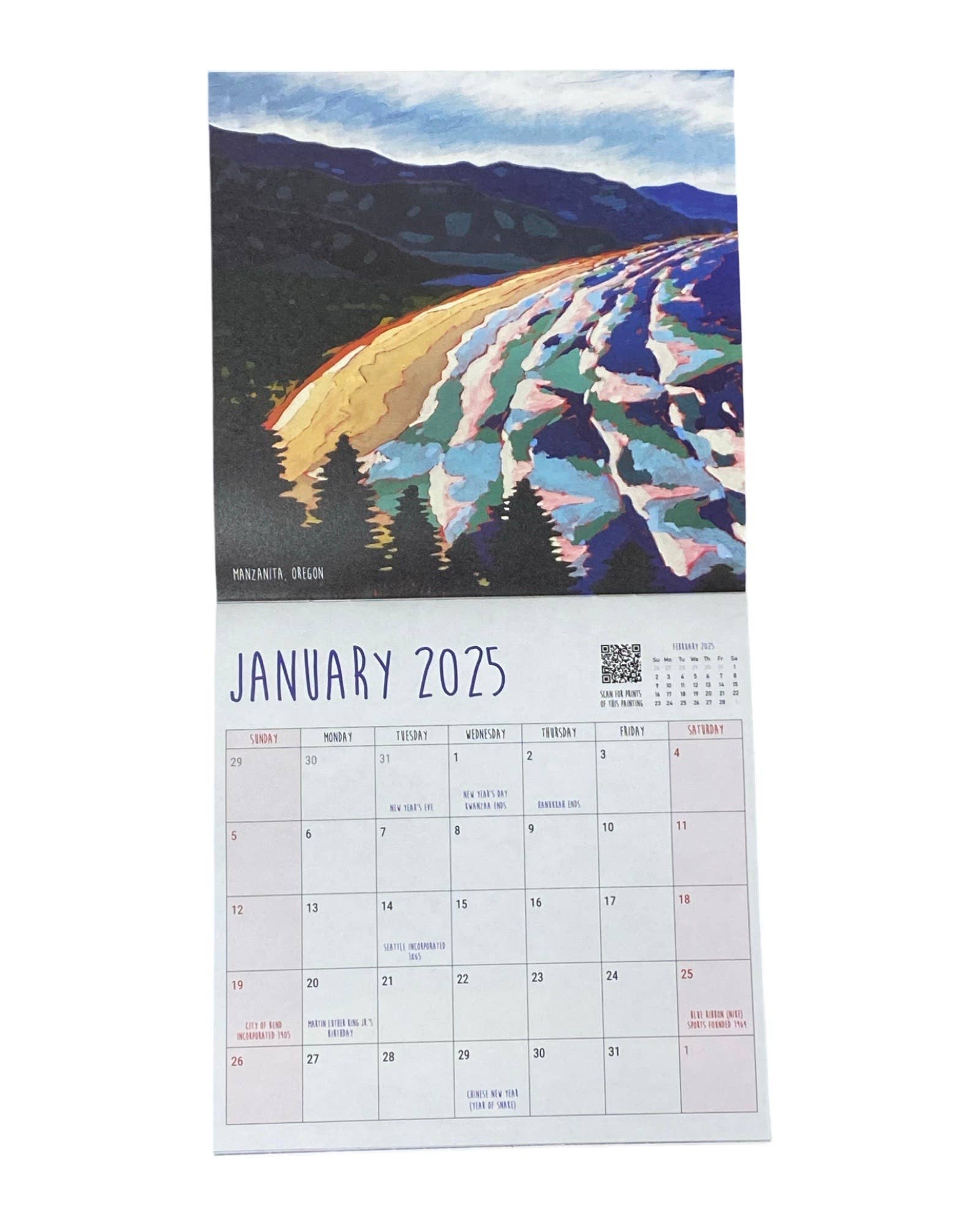2025 mini calendar featuring new and classic paintings celebrating the natural beauty of Oregon & Washington State. 7"x7"